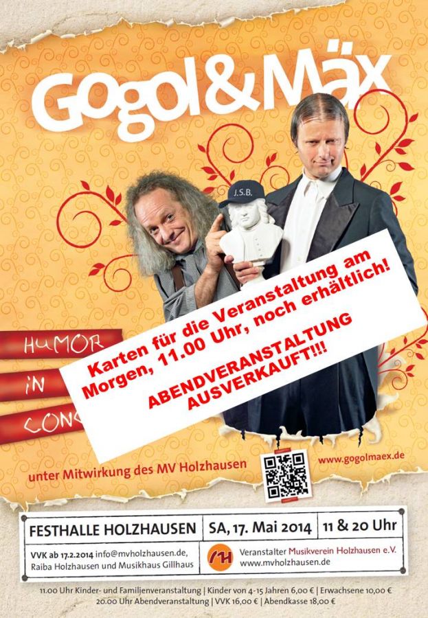 Samstag 17. Mai in der Festhalle Holzhausen können Sie noch Karten für die Veranstaltung am Morgen, 11.00 Uhr, erwerben.
